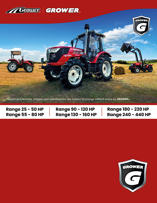 Explore our product catalogs to discover our full range of tractors, harvesting equipment, and implements. Find the right solution for your field needs and learn more about the power and versatility behind every GROWER machine.